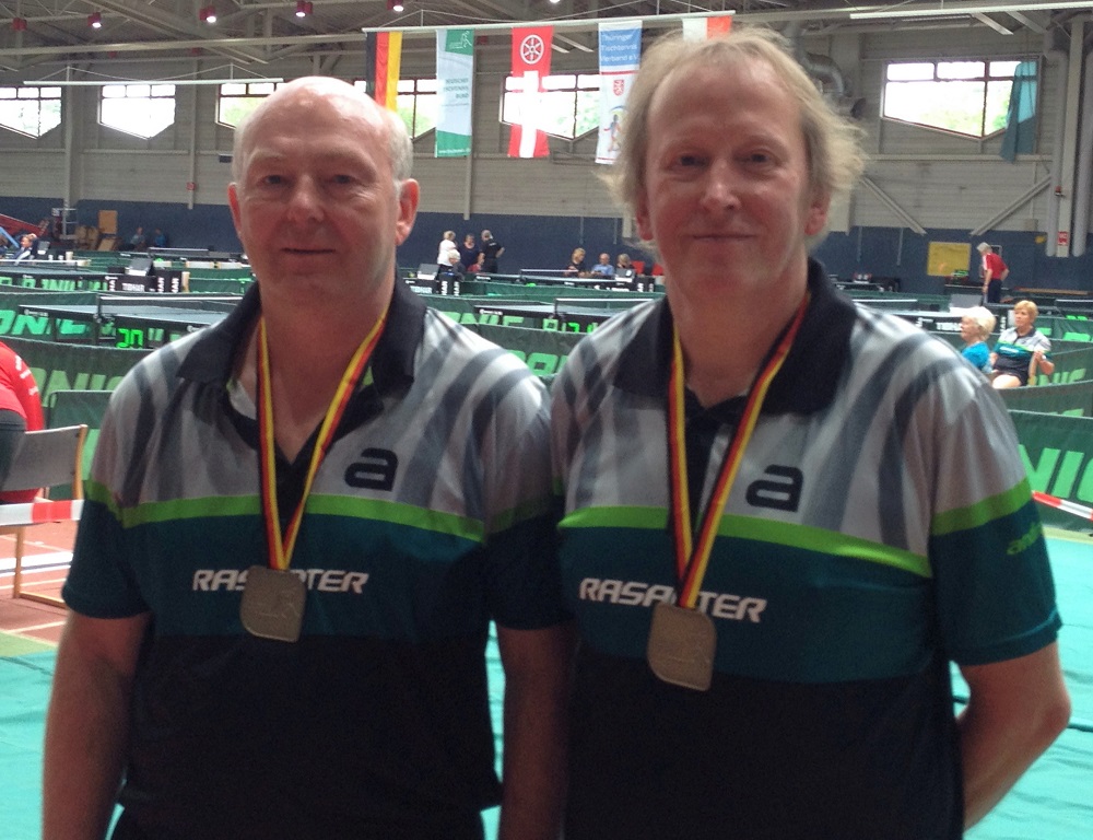 Mit einer Medaille im Gepäck ist SVB-Urgestein Dieter Ristig von den dt. Senioren-Einzelmeisterschaften in Erfurt zurückgekehrt. An der Seite von Uli Watermann (TuS Bexterhagen) wurde er Dritter in der Doppel-Konkurrenz der Altersklasse 60. Erst im Halbfinale musste sich das Duo Ristig/Watermann den späteren Deutschen Meistern Klaus Werz/Wolfgang Jagst (NSU Neckarsulm/TTF Alfshausen) mit 1 zu 3 geschlagen geben. Herzlichen Glückwunsch zur Bronzemedaille!