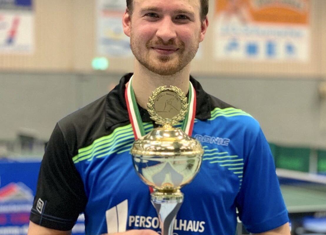 In der Hauptrunde setzte er sich zuerst mit 3:0 (9, 3, 4) gegen Ulrich Watermann (TuS Bexterhagen) durch, im ¼ Finale dann ein 3:1 (7, -5, 5, 6) Sieg gegen Jonas Korf (ebenfalls TuS Bexterhagen). Im Halbfinale wartete Maximilian Schwerdt vom Verbandsligisten TuRa Elsen, gegen den er sich klar mit 3:0 (4, 4, 7) durchsetzte. In einem spannenden Finale mit vielen tollen Ballwechseln setzte er sich mit dem 3:2 Sieg (-9, 5, 5, -10, 9) dann gegen Nico Bohlmann durch – der beim DJK BW Avenwedde in der NRW-Liga Mannschaft ebenfalls an Brett 1 spielt.